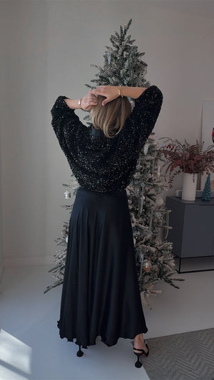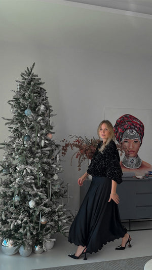 Flowing and lightweight viscose maxi skirt. It gracefully drapes down to the floor, making each step feel like a gentle sway. The wide elastic waistband adds comfort and ease, making it perfect for styling up or keeping it casual. Ideal for those days when you want to feel both relaxed and graceful.