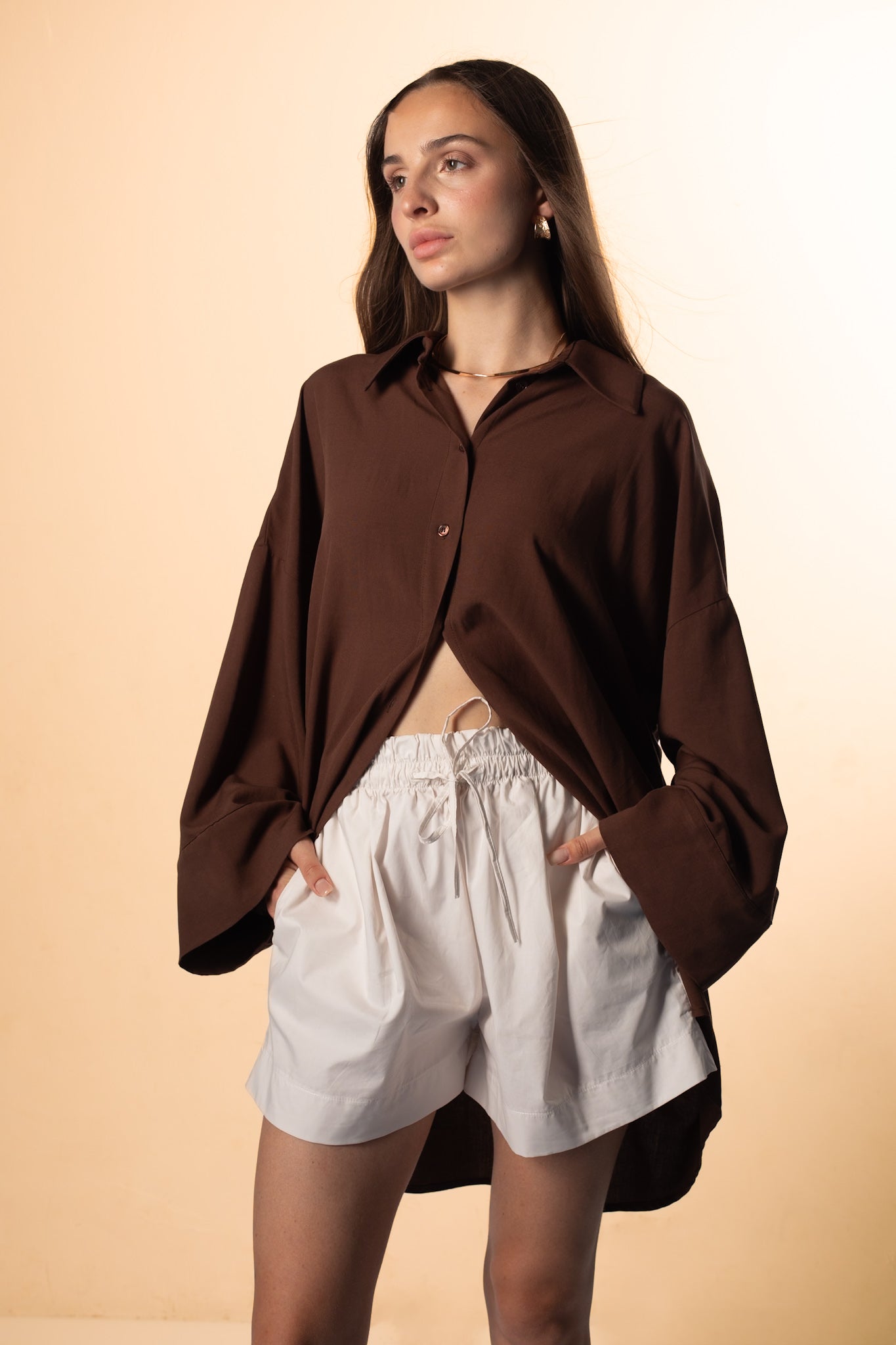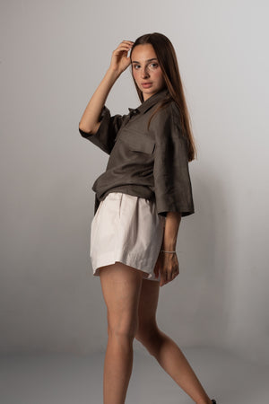 These cotton shorts bring a fresh twist to your summer wardrobe. Featuring a wide elastic waistband that provides a perfect fit and easy wear, these shorts are your go-to for effortless looks. The relaxed silhouette and soft cotton fabric ensure you stay cool and comfortable, whether you’re lounging at home or stepping out for a casual day. Pair them with your favorite oversized shirt or a simple tank top for a chic, laid-back vibe.