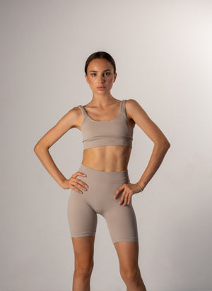 This ivory ribbed top combines style and function effortlessly. The tight ribbed elastic band on the hem offers a supportive and sculpting fit, making it ideal for any activity, from workouts to weekend lounging. Its soft ivory shade pairs beautifully with anything from high-waisted leggings to tailored trousers, or layered under a blazer for a polished yet relaxed vibe or use it as underwear. This top is a versatile addition to your wardrobe, perfect for creating a variety of chic, casual looks.