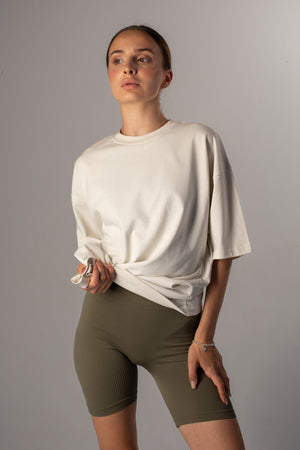 Elevate your activewear with these ribbed mid-rise bike shorts which delicately correct the shape. Wide elastic band emphasized the waist and provides better fit. The seamless construction offers a smooth finish, making them perfect for layering with a crop top, T-shirt, or even an oversized blazer for a chic, off-duty look. Whether you're working out or styling them for a casual day out, these shorts provide the perfect blend of comfort and style.