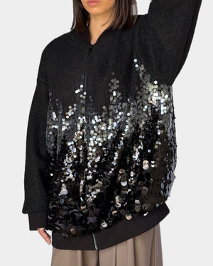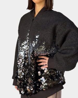 Oversized wool bomber with sequins