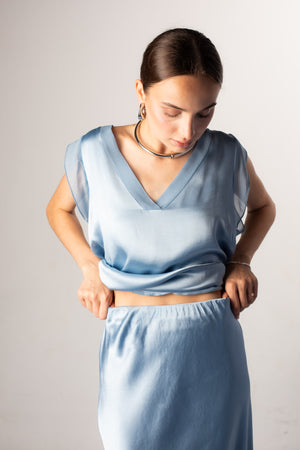 This bias-cut viscose skirt in a stunning pearl hue is the epitome of elegance. Designed to drape gracefully over your figure, it offers a flawless fit that accentuates your silhouette. The wide elastic waistband ensures both comfort and a secure fit, while the fabric's dense texture adds a touch of luxury, allowing the skirt to flow beautifully with every movement. Perfect for both day and evening looks, this skirt is a timeless addition to your wardrobe.