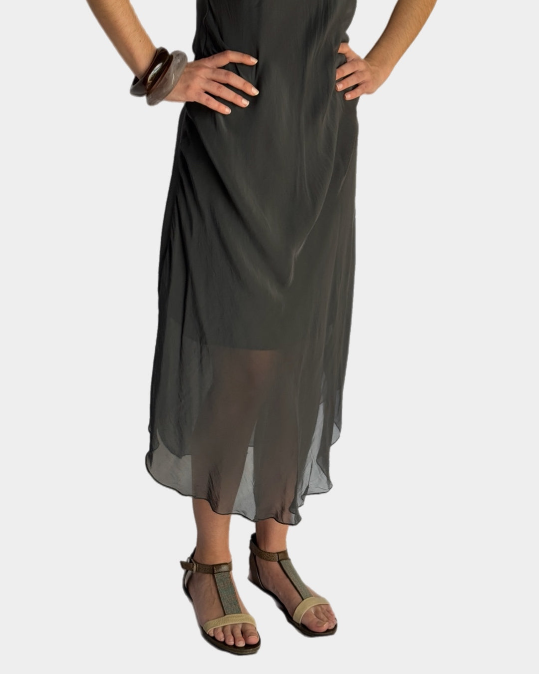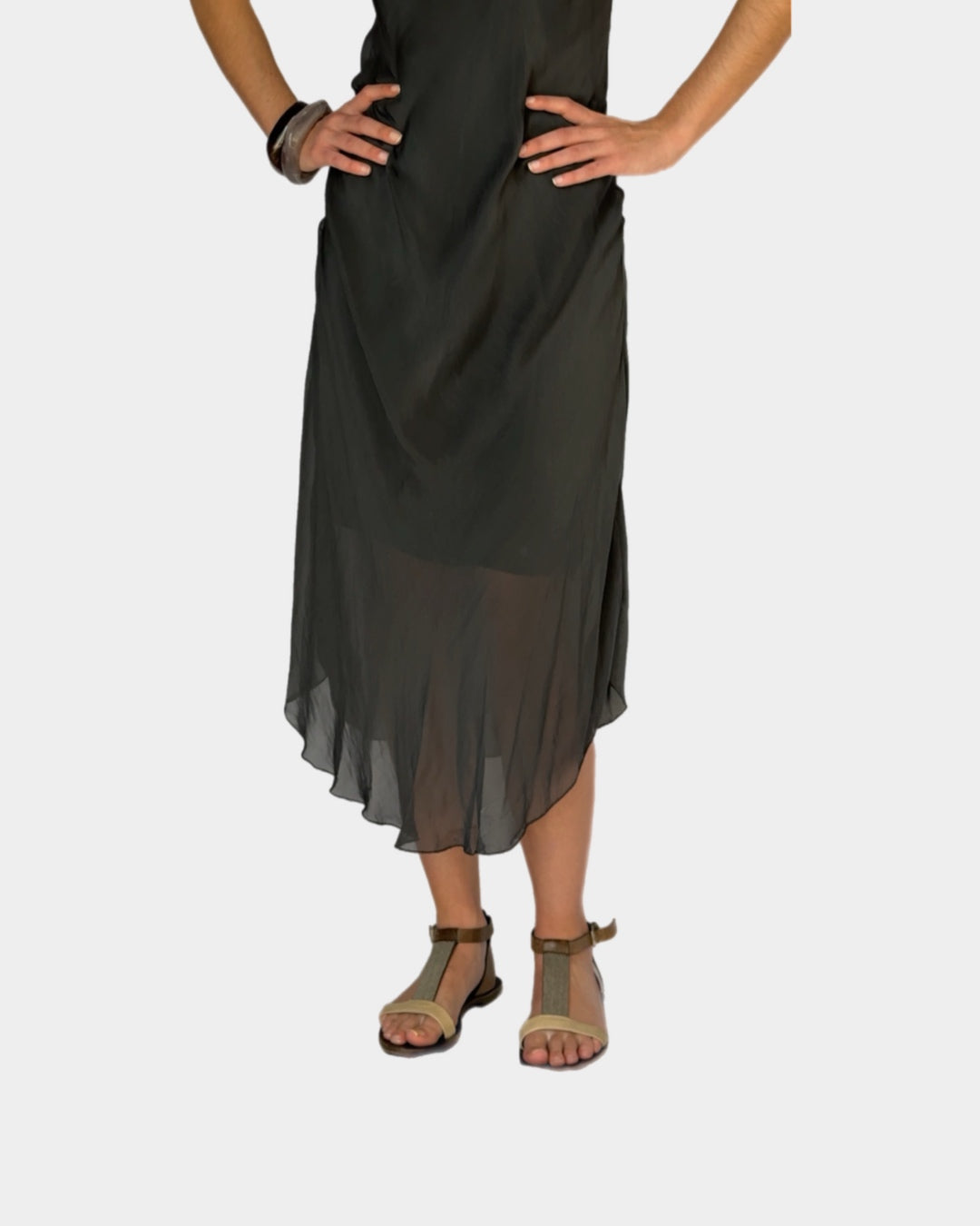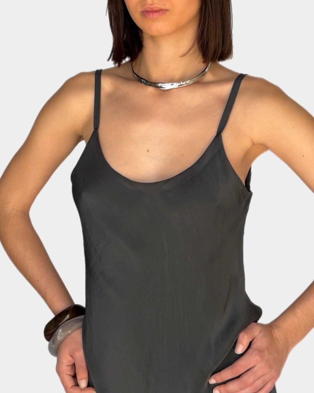 This flowing viscose dress is designed to flatter any body type, ensuring a perfect fit with its lightweight fabric and delicate lower layer. Detailed with thin shoulder straps, making it ideal for beach walks or casual summer outings. The fabric is wrinkle-resistant, ensuring you look effortlessly chic with every step.